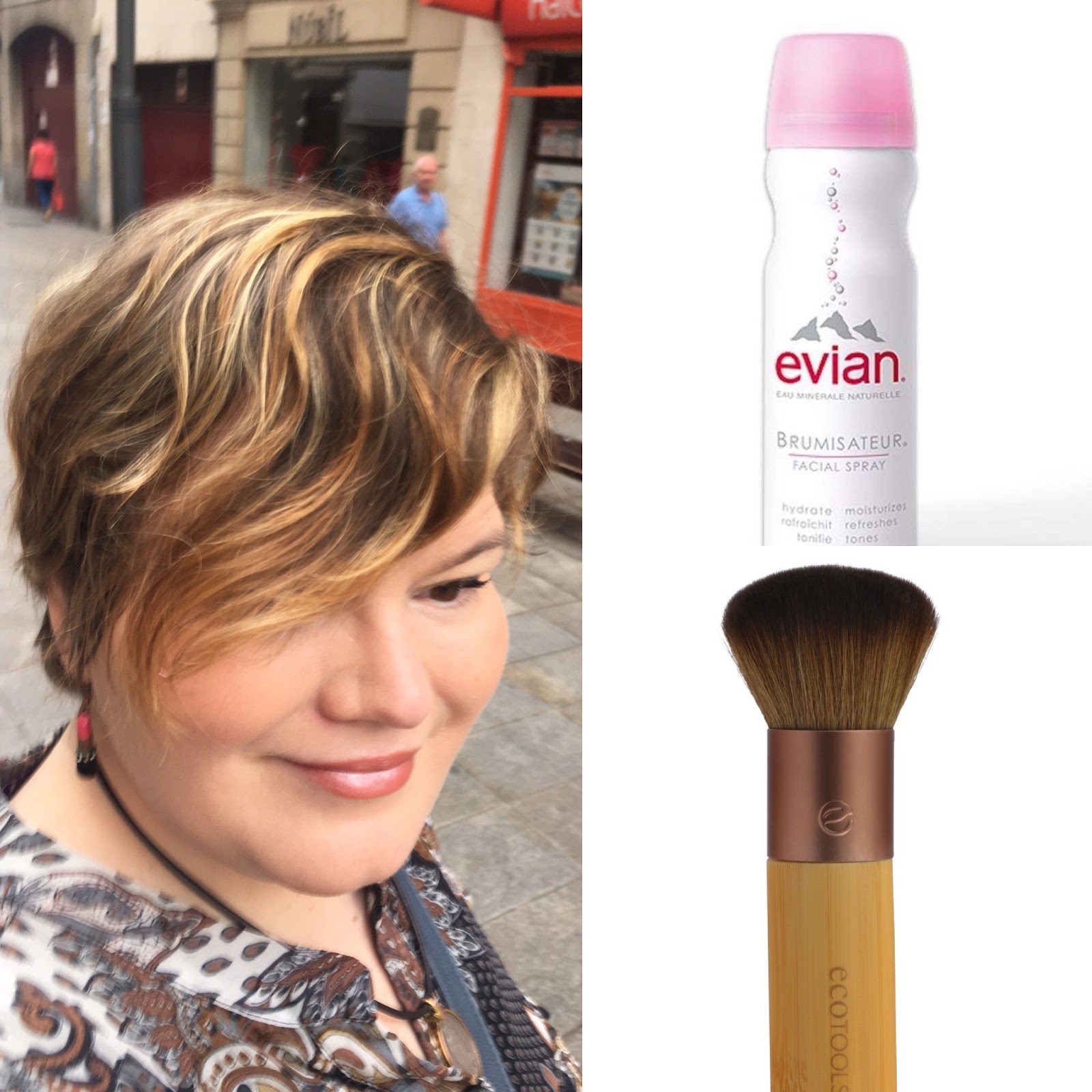 Yo tengo un taco más que tu y soy fan del maquillaje en polvo, se me engancha menos en los pelitos de la cara, me lo aplico con borla, brocha o las dos, y luego me doy unos flis-flis de prep and prime en spray que tanto se ha puesto de moda para un toque más fresco. Me pregunto si no funcionará igual con agua termal...